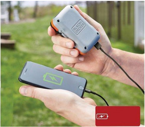 Trong bộ sản phẩm bạn sẽ được trang bị một cục pin BDCB12U-B1 nhỏ gọn có thể được sử dụng như một cục pin dự phòng. Khi bạn sử dụng ổ cắm điện 2A thì thời gian sạc mất 3 giờ - 2 ổ cắm điện USB 4A giúp sạc nhanh hơn. Trang bị 4 đèn LED trạng thái pin nhỏ và nhẹ để mang đi mọi nơi.