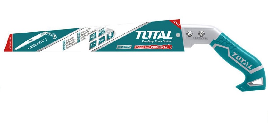 Cưa cành cầm tay lưỡi thẳng Total THT5113006 một dụng cụ được thiết kế sắc bén, chuyên dụng, kích cỡ nhỏ gọn, chắc chắn năng suất làm việc của bạn sẽ được gia tăng đáng kể. Lưỡi răng cưa khít nhau vô cùng sắc bén sẽ cho những đường cắt chính xác, nhanh chóng kể cả những cành cây có độ cứng và dày. Tay cầm chắc chắn, thiết kế cong theo hình dạng tay để tạo lực nhấn được mạnh mẽ hơn.