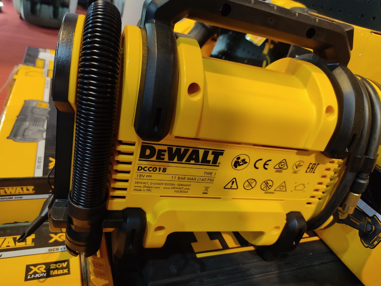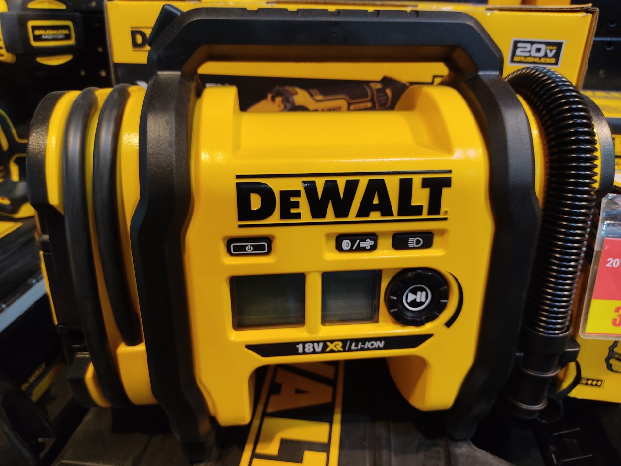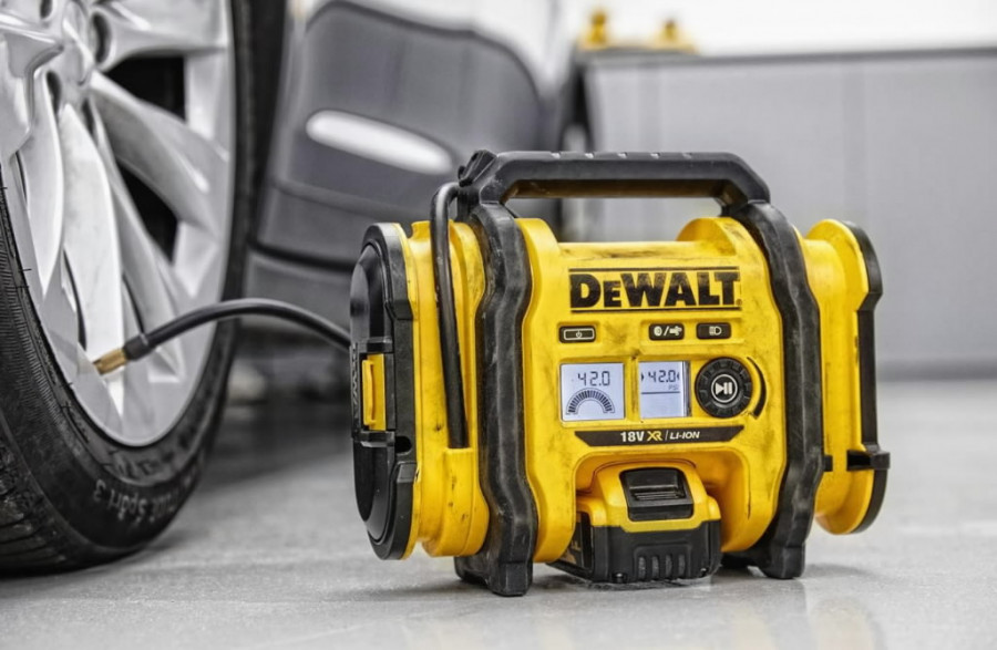 Máy bơm hơi Dewalt DCC018N nhỏ gọn, nhẹ, hiệu suất cao với đèn LED cho phép sử dụng vào ban đêm hoặc trong điều kiện ánh sáng yếu.