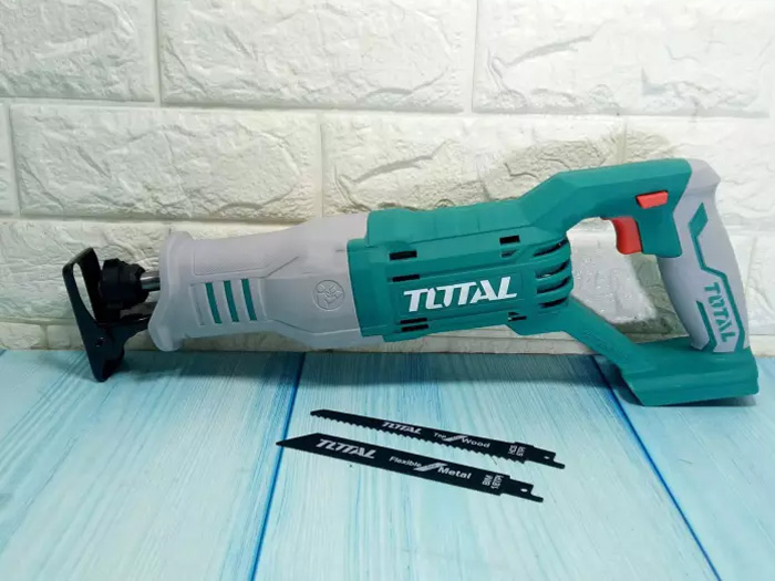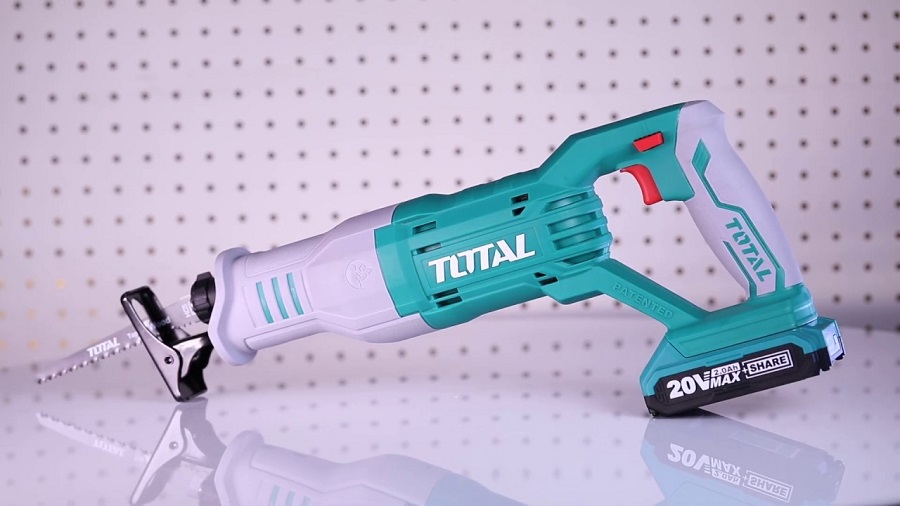 Phần vỏ máy được làm từ nhựa cao cấp, tay cầm có độ nhám cao, chống trơn trượt khi tay bị ra mồ hôi. Máy cưa kiếm Total sử dụng pin sạc 20V, quay với tốc độ không tải đạt mức tối đa 3200 vòng/phút sẽ hỗ trợ cắt kim loại, cắt cành cây, cắt gỗ, cắt đường ống nhựa hiệu quả, nhanh chóng.