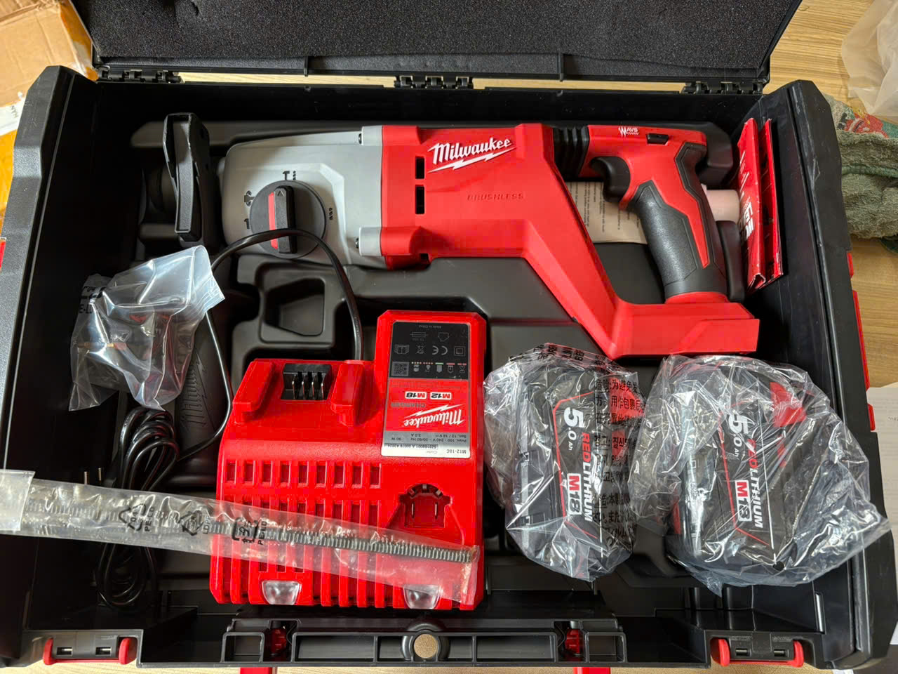 Máy khoan bê tông cầm tay M18 BLHACD26- 0X0 (bare) và 2 pin 18V 5.0Ah M18B5 và Sạc M12-18C