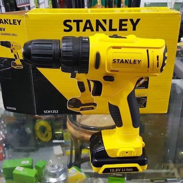 Stanley SCH12S2 vừa là máy khoan pin vừa là máy vặn vít. Máy khoan pin Stanley đi kèm 2 pin sạc Li-ion 10.8V. Mặc dù có điện thế pin là 10.8V nhưng công suất làm việc tương đương với máy khoan pin 12V.