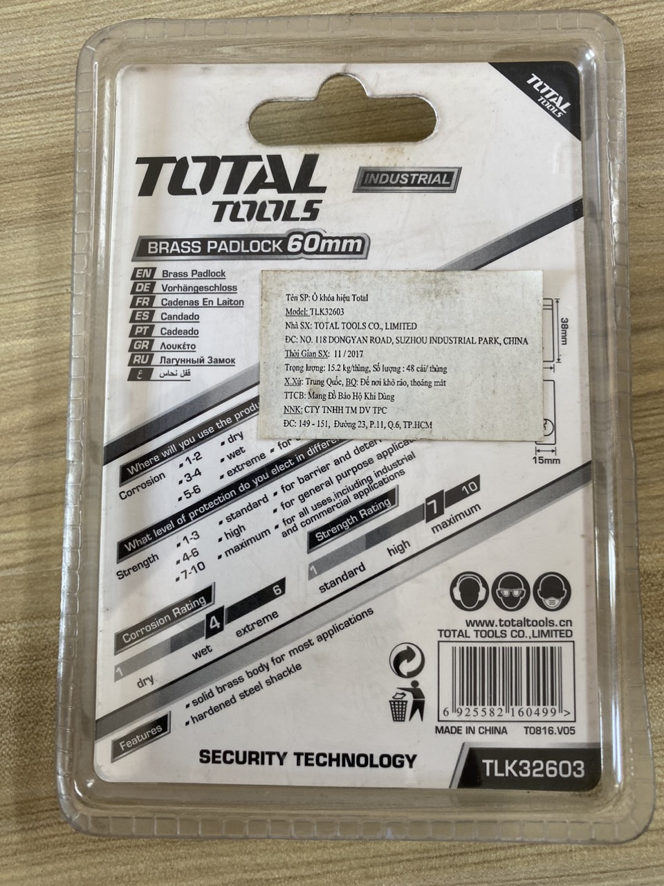 Ổ khóa Total TLK32603 là sản phẩm có tính an toàn cao cho các gia đình, với thân khóa, phần ruột được làm bằng chất liệu chống rỉ sét, giúp đảm bảo giữ được độ bền tối đa và hoạt động tốt bất chấp mọi tác động từ bên ngoài. Nhờ được làm từ chất liệu cao cấp, siêu cứng cáp và rất bền bỉ, ổ khóa và chìa khóa dễ dàng đóng một cách nhanh chóng và chắc chắn.