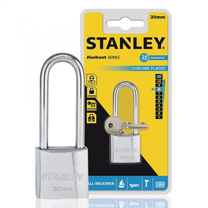 S742-015 Ổ Khóa Hiệu Stanley USA, Chrome trắng, càng dài, rộng 30mm