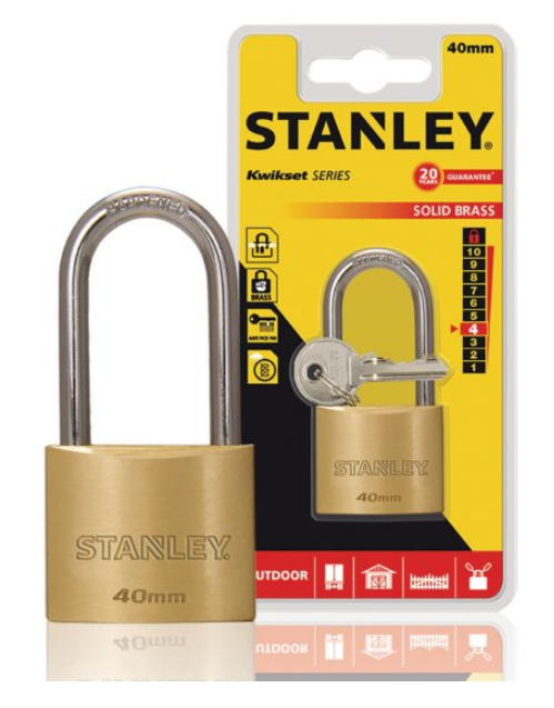 S742-043 Ổ Khóa Hiệu Stanley USA, đồng thau, càng dài, rộng 40mm