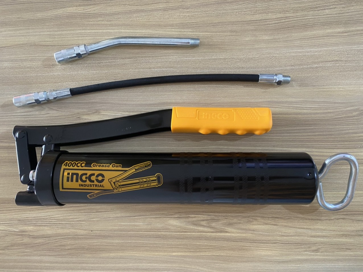 Súng bơm mỡ 400cc Ingco GRG015001 với chiều dài tổng thế 560mm, sử dụng cho máy bơm mỡ dùng khí nén, sử dụng không khí như là sức mạnh để hút mỡ vào điểm bôi trơn.
