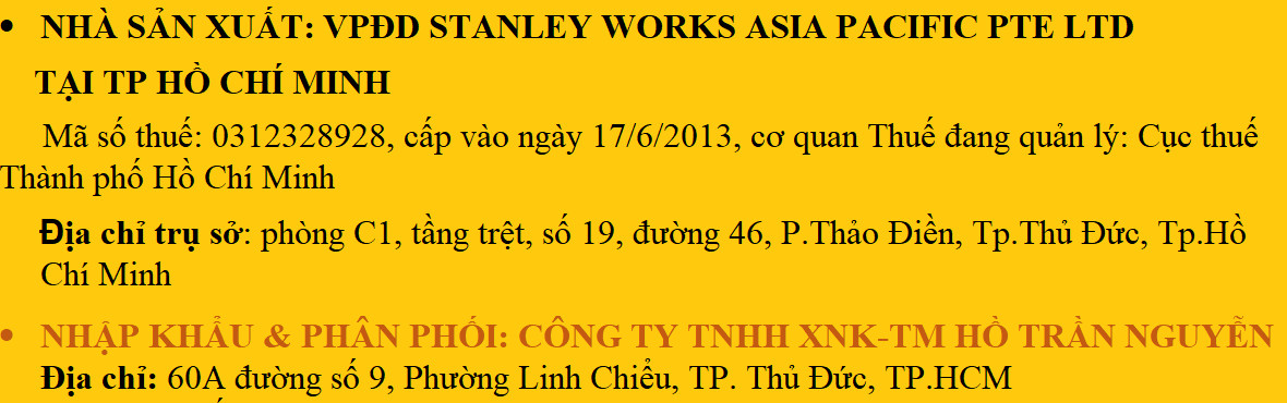 - Nhà sản xuất: Stanley